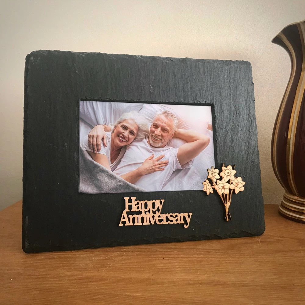 - Wooden Welsh daffodils and ‘Happy anniversary’ message