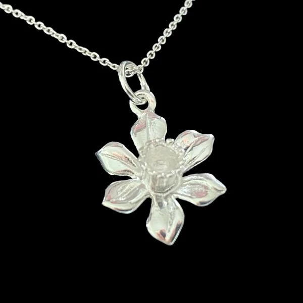 - Sterling silver single daffodil shaped pendant and 18 inch necklace