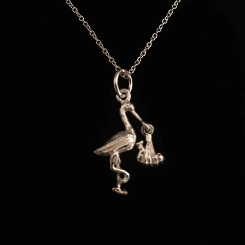 Stork and baby necklace