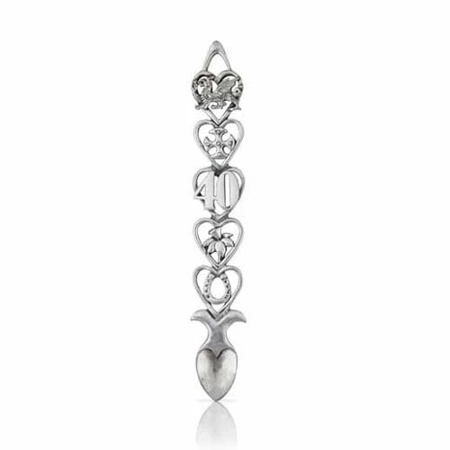 The Pewter Welsh love spoon is the perfect present for a 40th anniversary or birthday. The spoon includes symbols of protection, good luck and love.